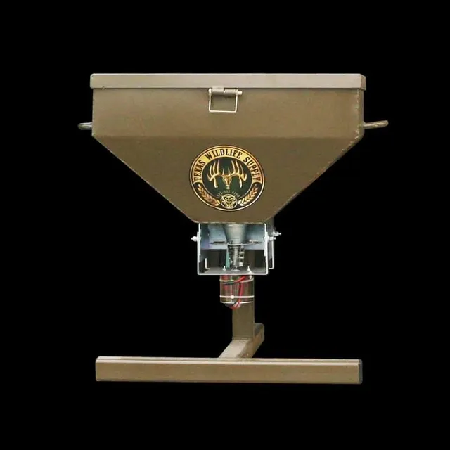 Our Monster Road Feeders for Deer uses the West Texas Feeder Supply Eliminator mechanism, that not only rotates, but goes up and down creating a closed seal when the motor is off. We offer different sizes ranging from 50Lb to 2000Lb.